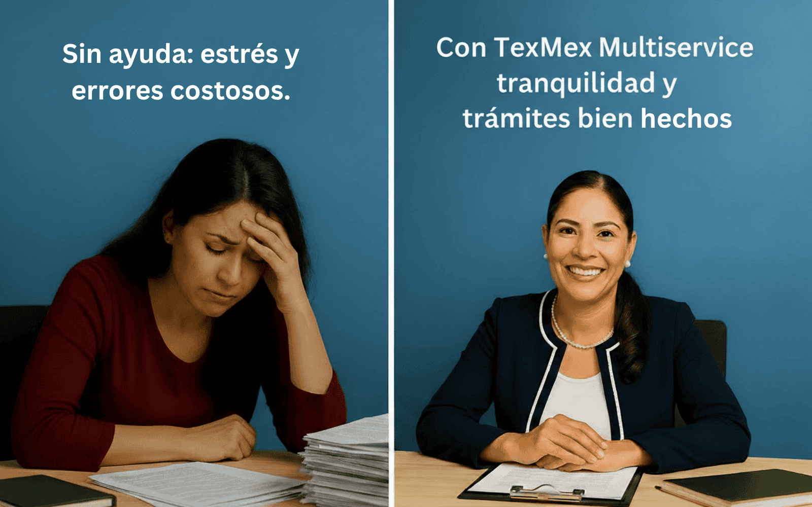 En TexMex Multiservice hemos ayudado a miles en nuestra comunidad a manejar sus trámites de manera rápida, correcta y sin estrés. Hablamos tu idioma, entendemos tus necesidades y te acompañamos en cada paso.